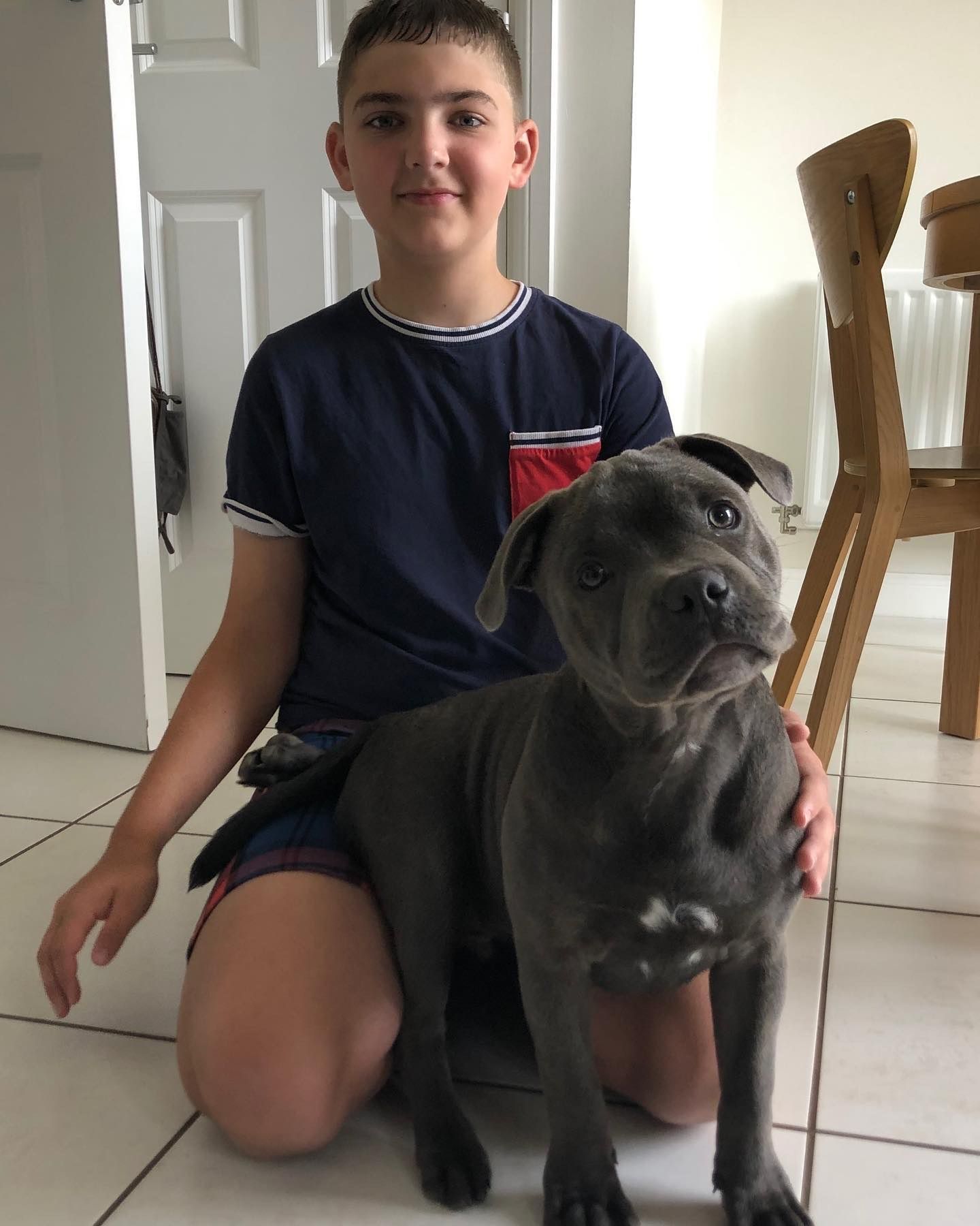 Boomer is a wonderful puppy. English Staffy Home provided excellent communication, health records, and guidance for training and socialization. Boomer arrived healthy, confident, and socialized. He has quickly adapted to our home, is playful, affectionate, and loving. The breeder’s dedication to raising well-tempered puppies is clear, and we are extremely happy with our experience.