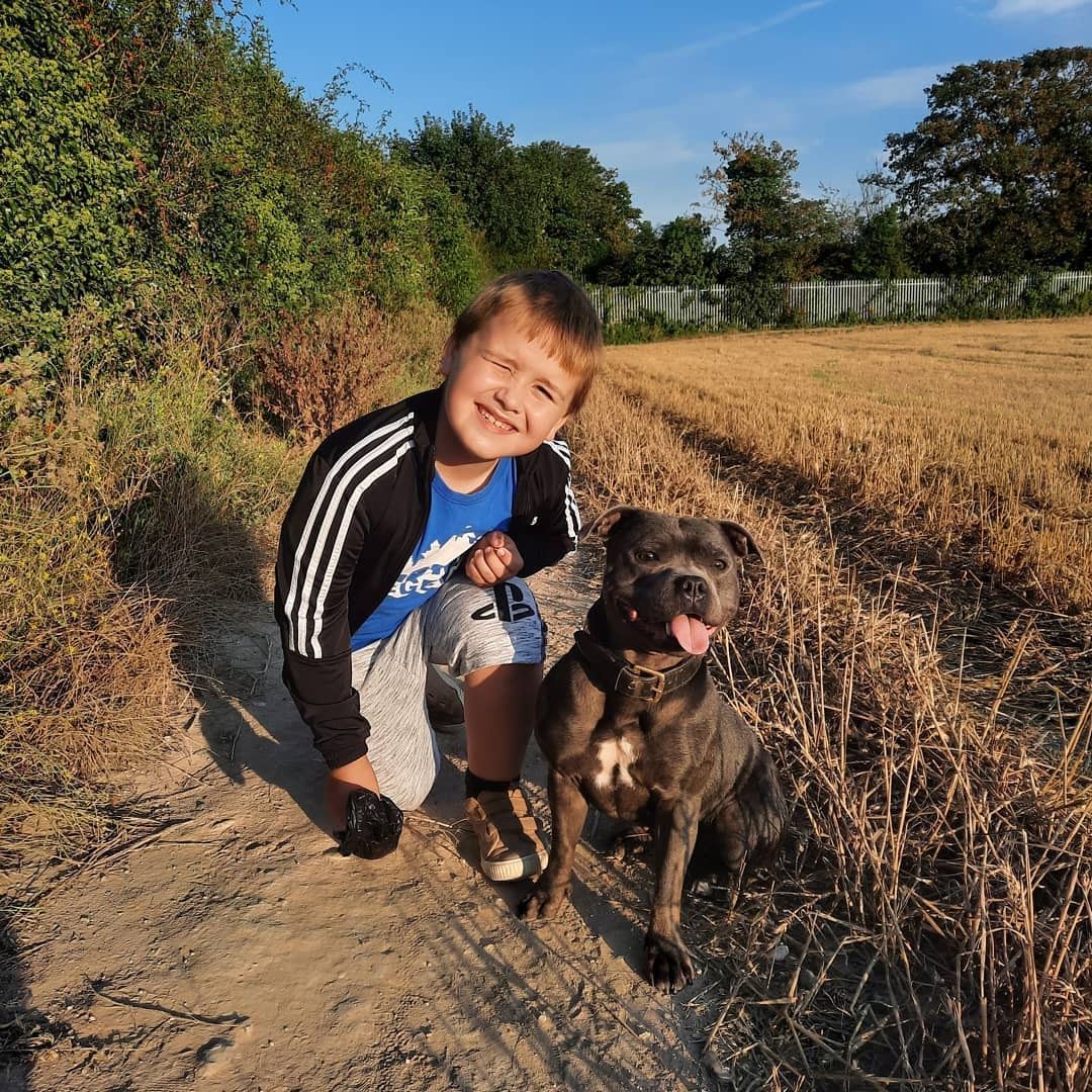 Ryder has been a perfect addition to our family. English Staffy Home provided regular updates, health records, and detailed guidance for training and care. Ryder arrived healthy, confident, and socialized. He has quickly adapted to his new home, is playful, affectionate, and loving. The care and attention from this breeder are truly outstanding.
