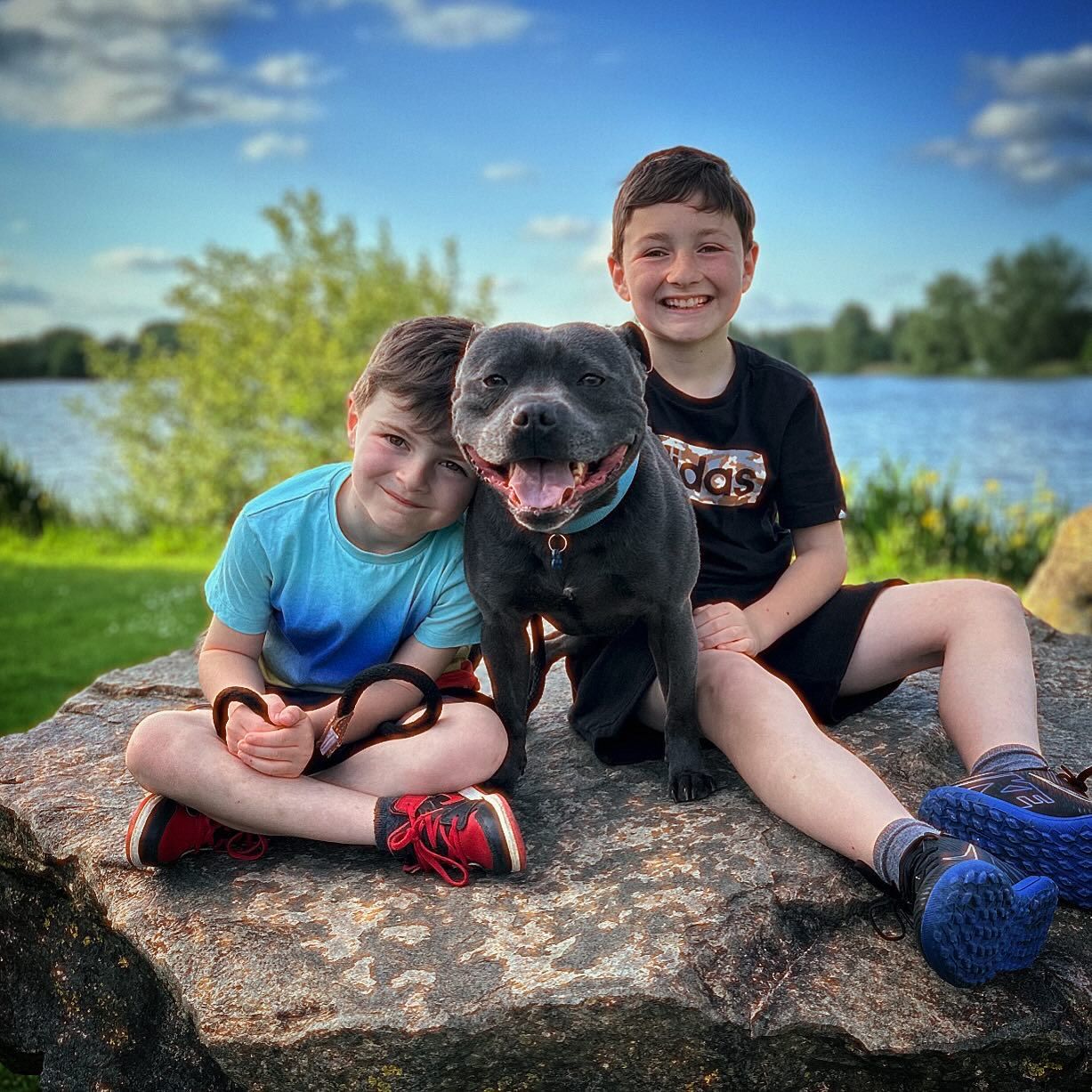 Duke has been an incredible addition to our household. English Staffy Home provided excellent communication, updates, and support throughout the adoption process. Duke arrived healthy, confident, and well-socialized. He is friendly, playful, and affectionate with everyone he meets. The care and attention he received before coming home is obvious in his temperament. We are extremely pleased with our experience.